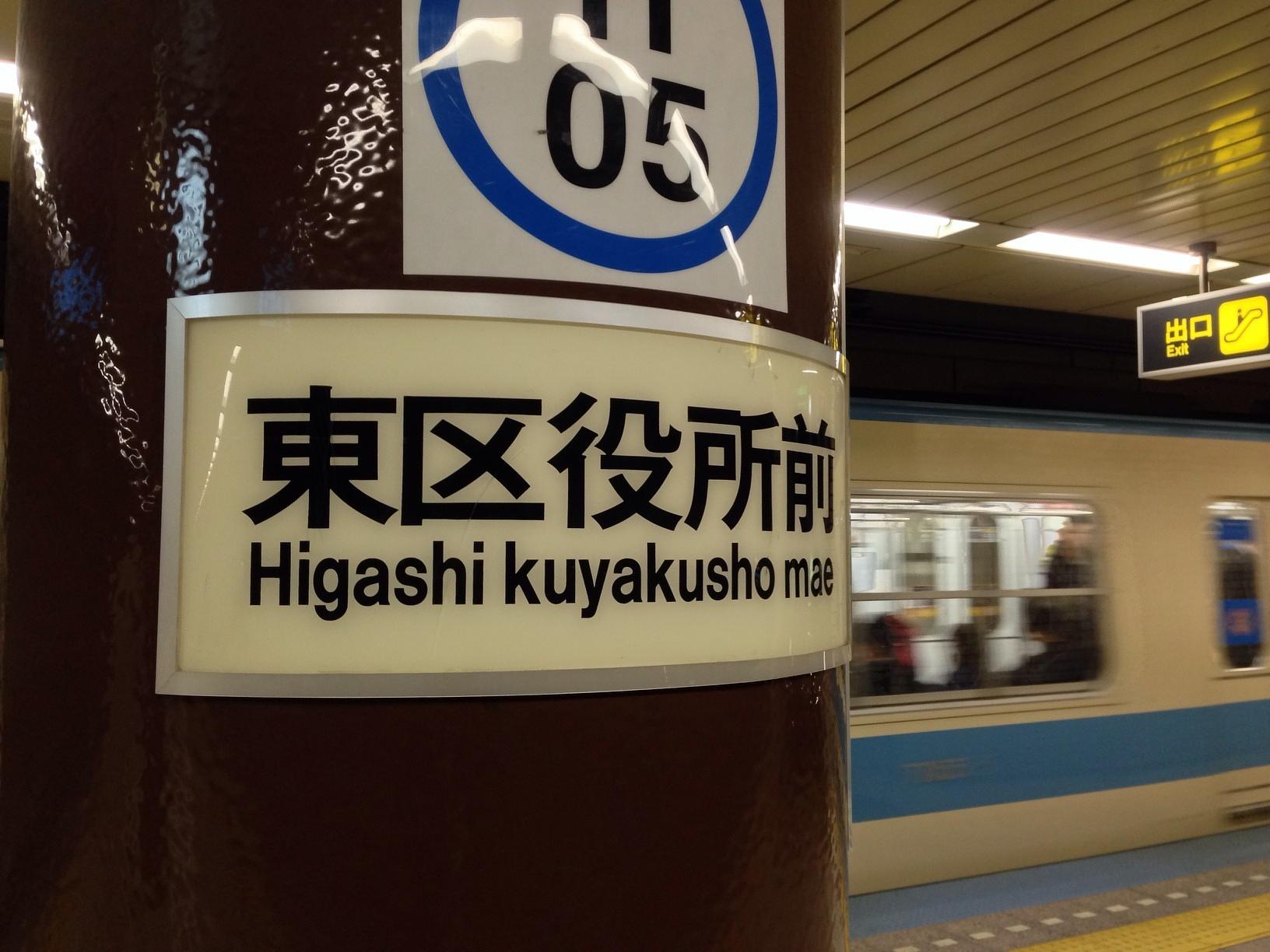 토호 선을 타고 두 정거장 히가시 구 야쿠쇼마에 역에 도착. 포스퀘어 베뉴는 어디에 있는가.