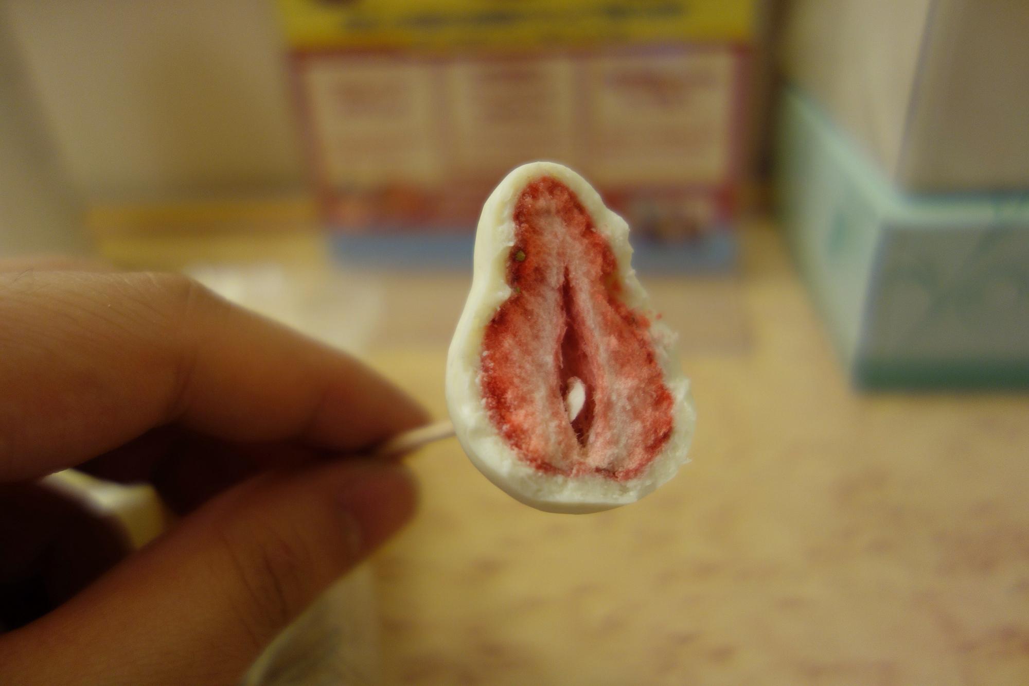아까 무인양품에서 산 화이트 초코렛 딸기. 묘한 맛이다.