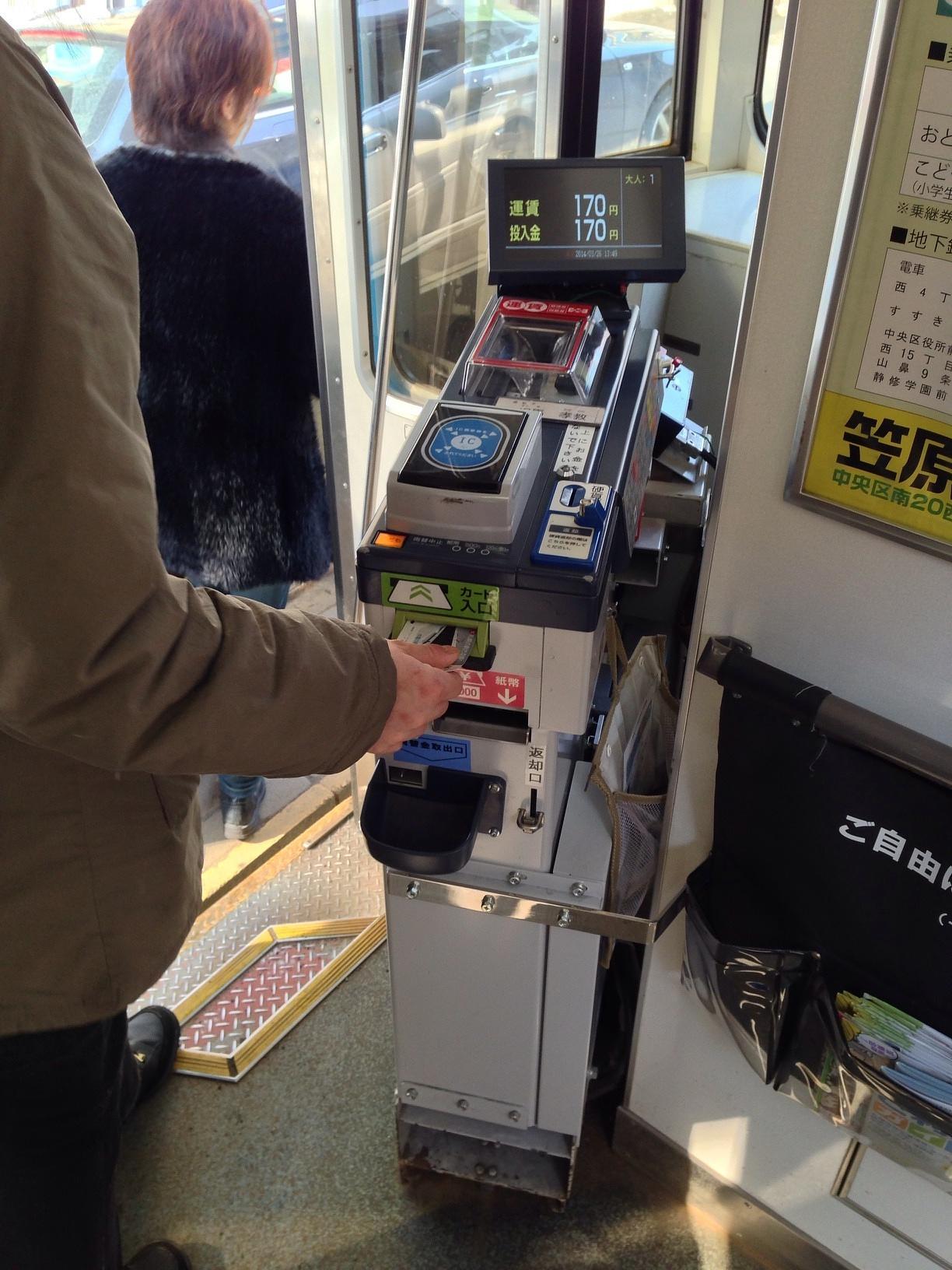 西4丁目停留場 (Nishi Yonchōme Sta.) Light Rail 내릴 때 요금을 지불합니다. 시영 지하철과 환승도 되는 것 같습니다. March 26th, 2014, PM 1:54