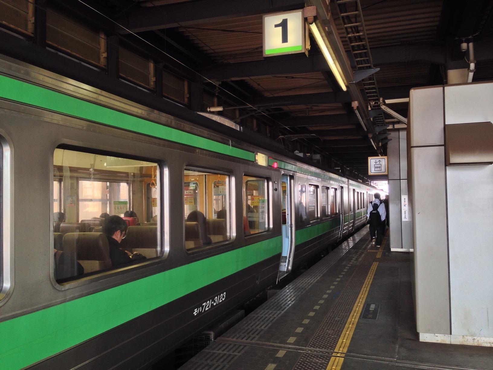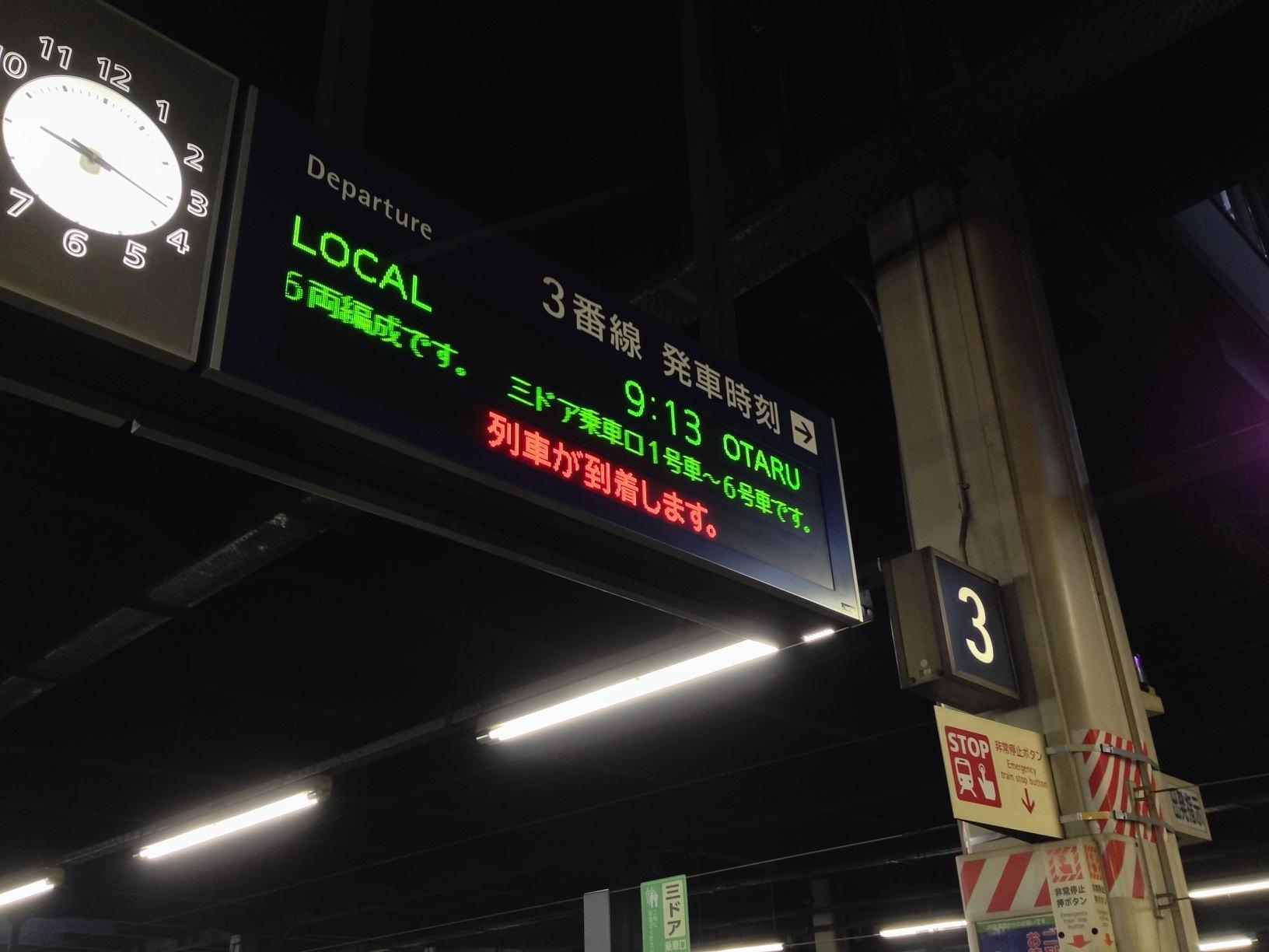 札幌駅 (Sapporo Sta.) Train Station JR하코다테본선 오타루 행 보통열차를 타고 다음 역인 소엔 역으로. 6분 지연이라니. March 27th, 2014, AM 9:19