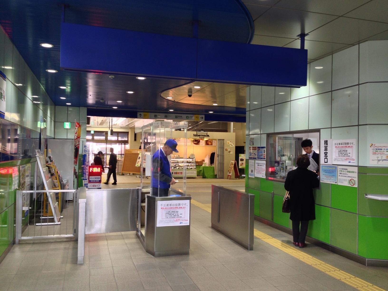 이와테은하철도 모리오카 역은 자동 개찰구가 없고 사람이 직접 처리합니다. 홋카이도&동일본패스는 보여주기만 하면 통과.