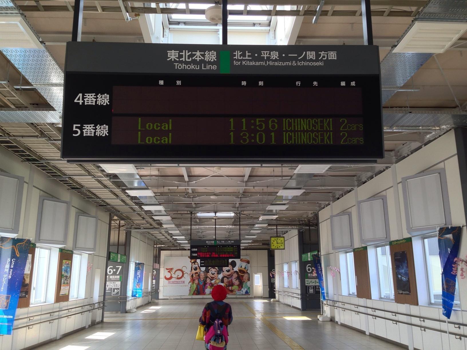 11시 56분에 출발하는 JR토호쿠선 보통열차를 타고 모리오카 역에서 이치노세키 역까지 갑니다.