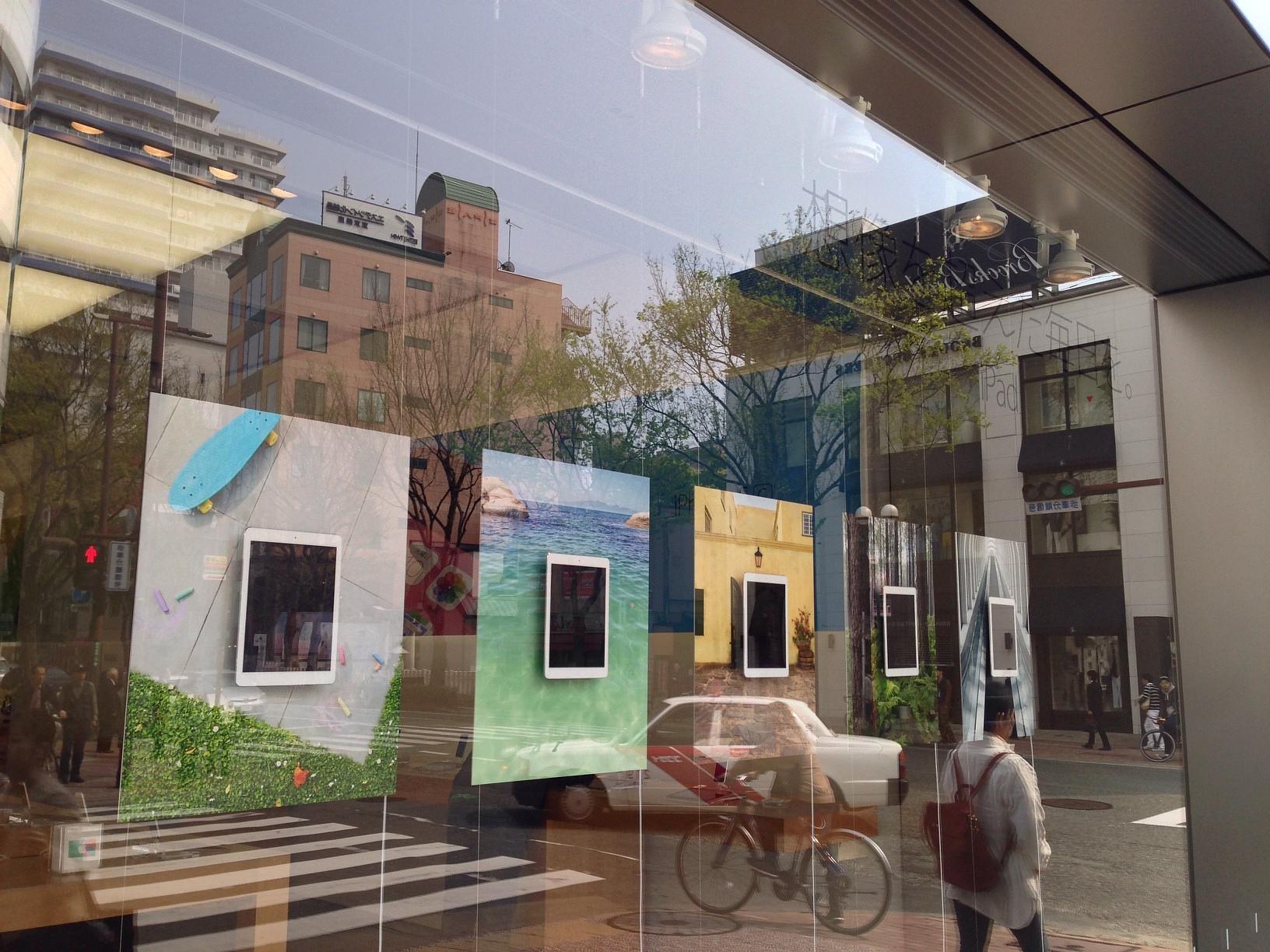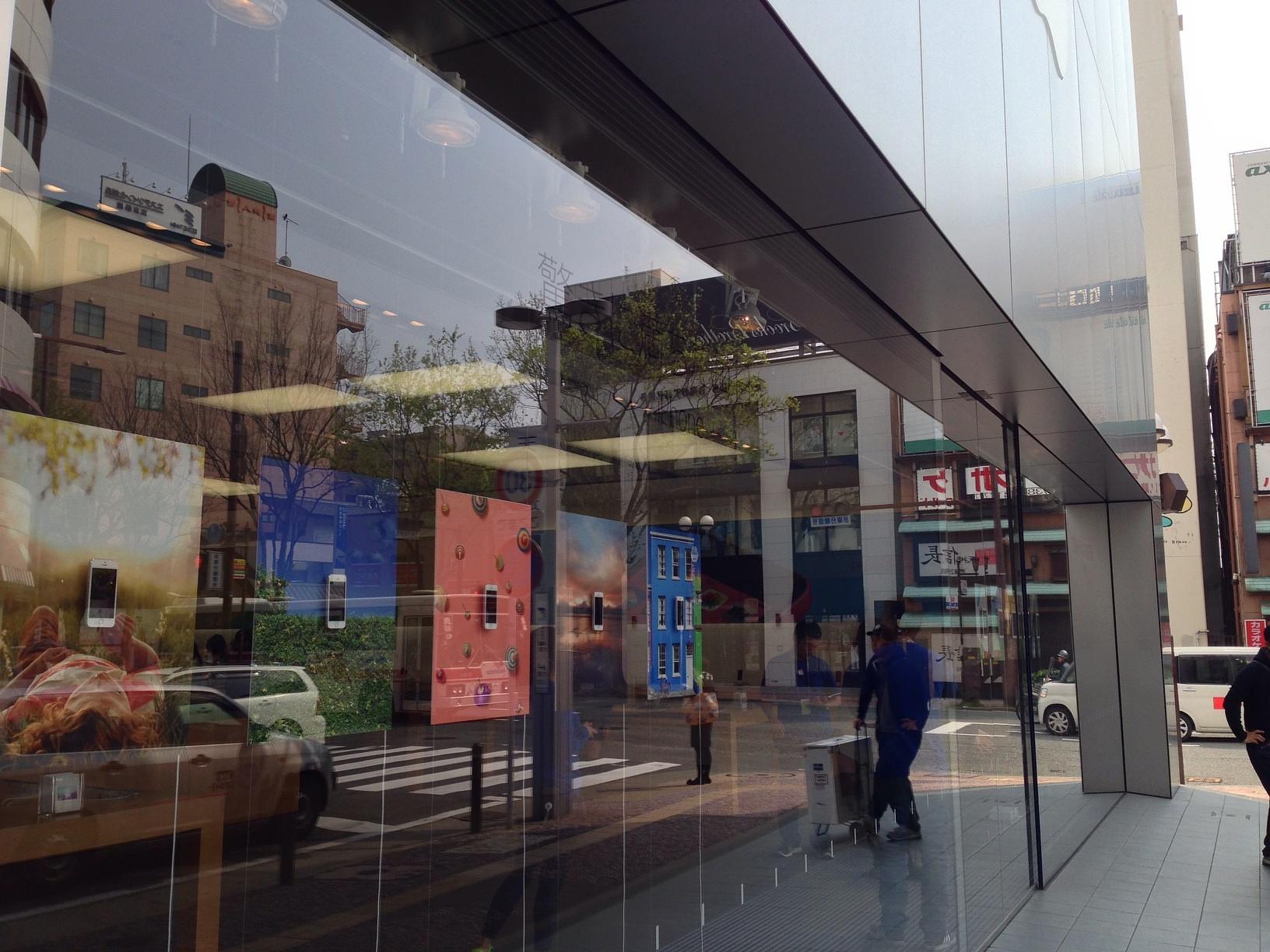 アップルストア 福岡天神 (Apple Store Fukuoka Tenjin) Electronics Store 정문 디자인이 바뀌었다! 아이폰 창문 재밌네요. April 11th, 2014, AM 10:08