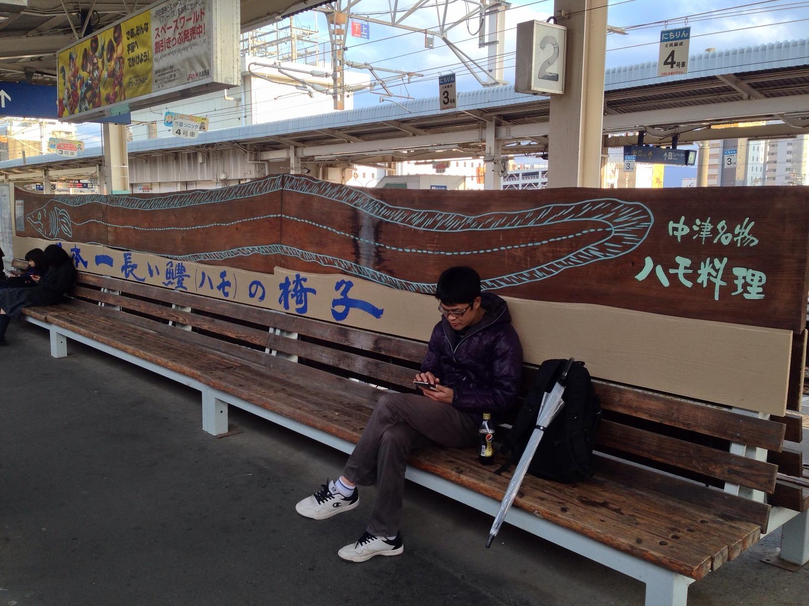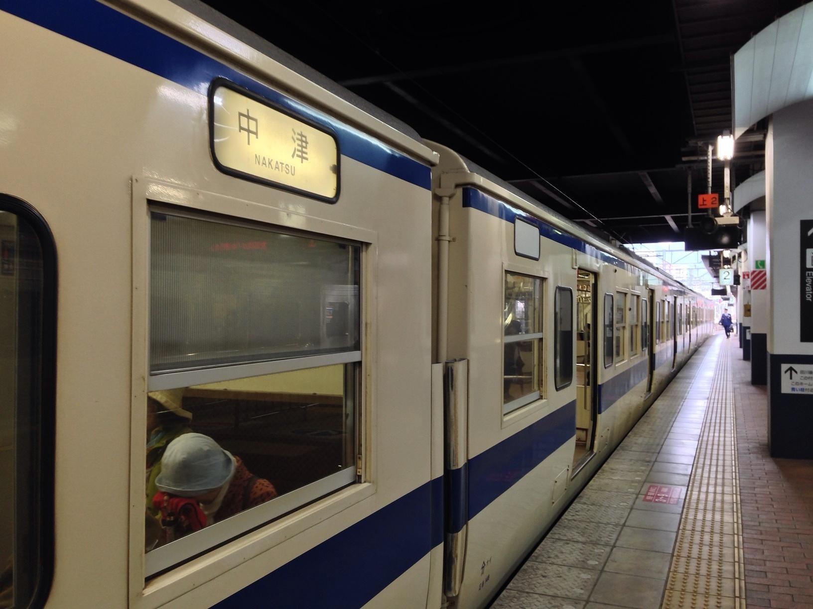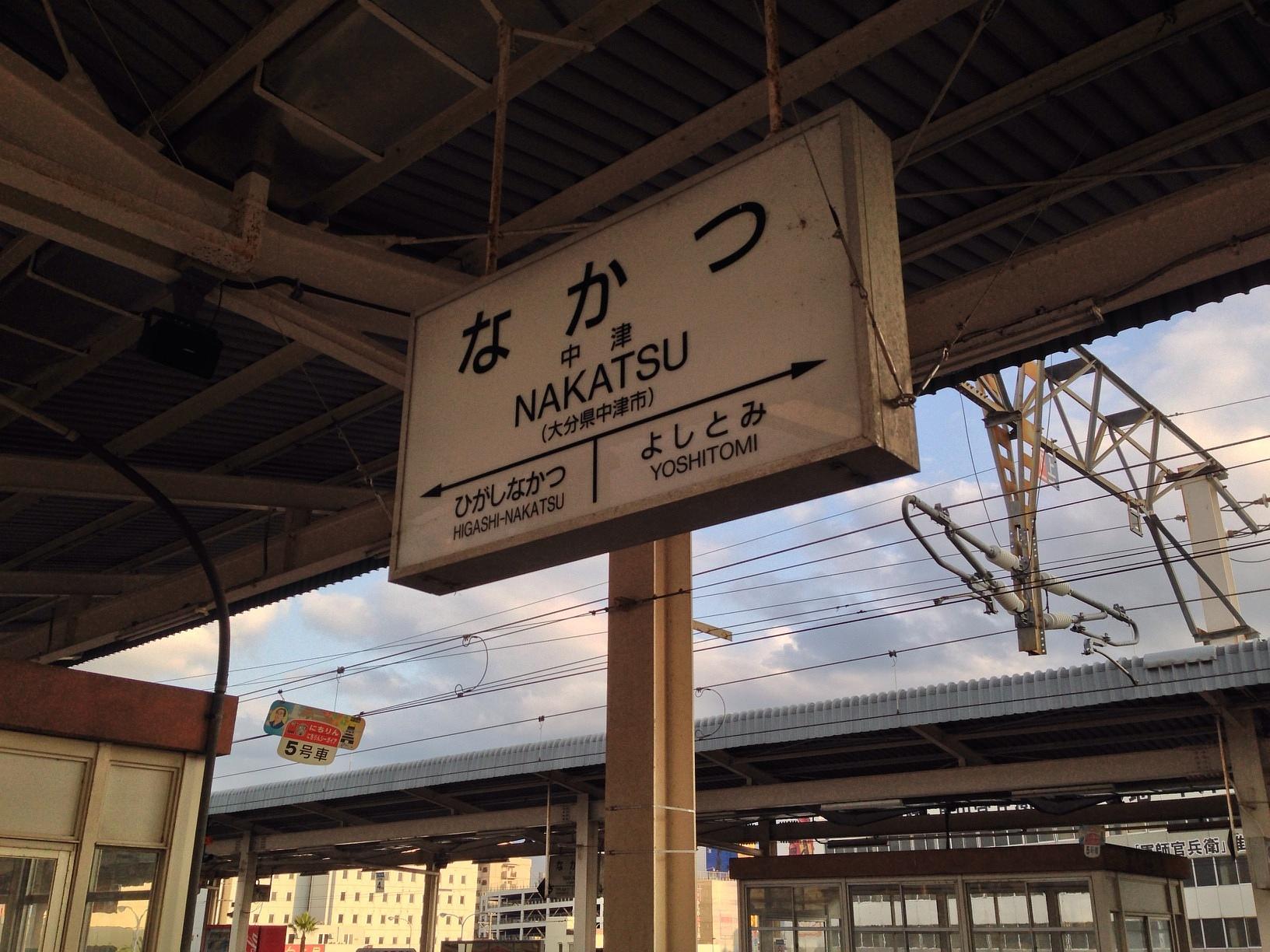 中津駅 (Nakatsu Sta.) Train Station 마지막으로 5시 49분 출발 JR닛포선 보통열차를 타고 나카츠 역에서 오이타 역까지 이동합니다. 보통 기다리면 전광판에 영문 표기가 나오는데 여기는 한참을 기다려도 없어서 헤맸네요. 전체적인 열차의 디자인이 맨들맨들하고 글자글자한 것이 예쁘네요. April 4th, 2014, PM 5:59
