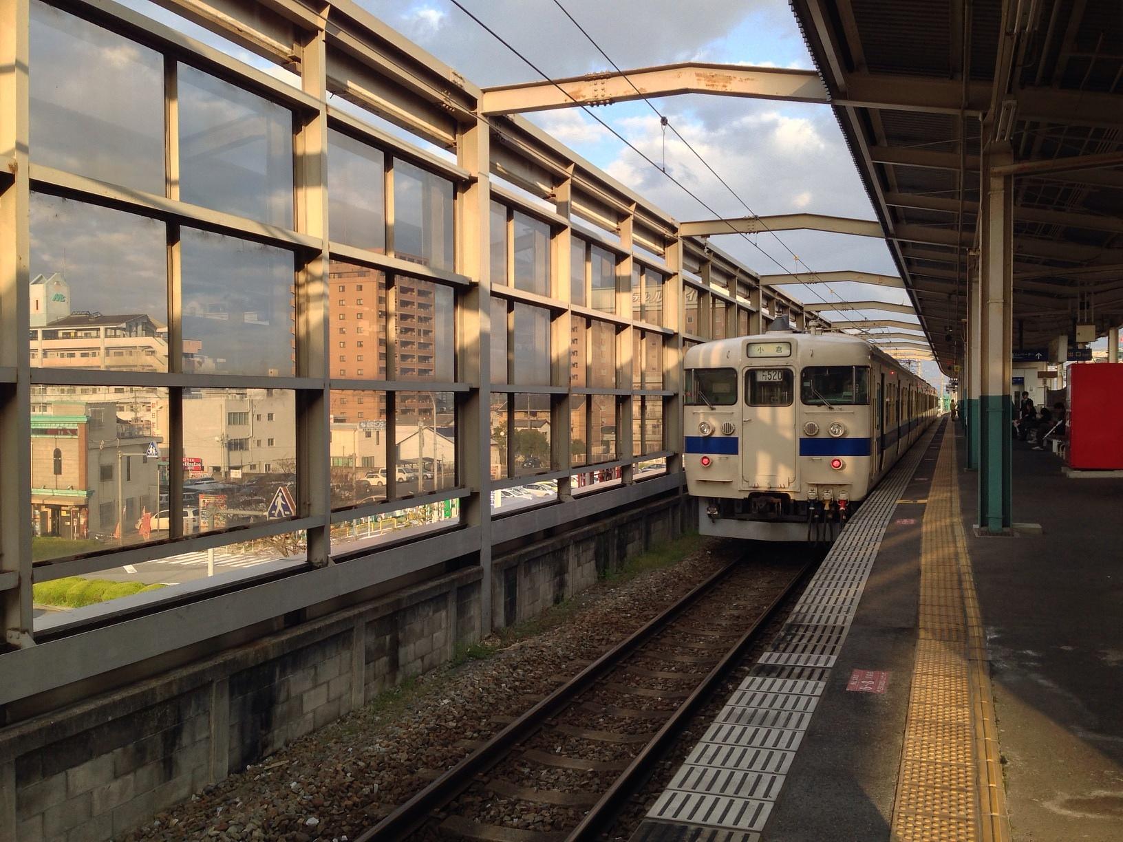 JR 小倉駅 (JR Kokura Sta.) Train Station 4시 26분에 출발하는 JR닛포선 보통열차를 타고 코쿠라 역에서 나가츠 역까지 갑니다. April 4th, 2014, PM 4:19
