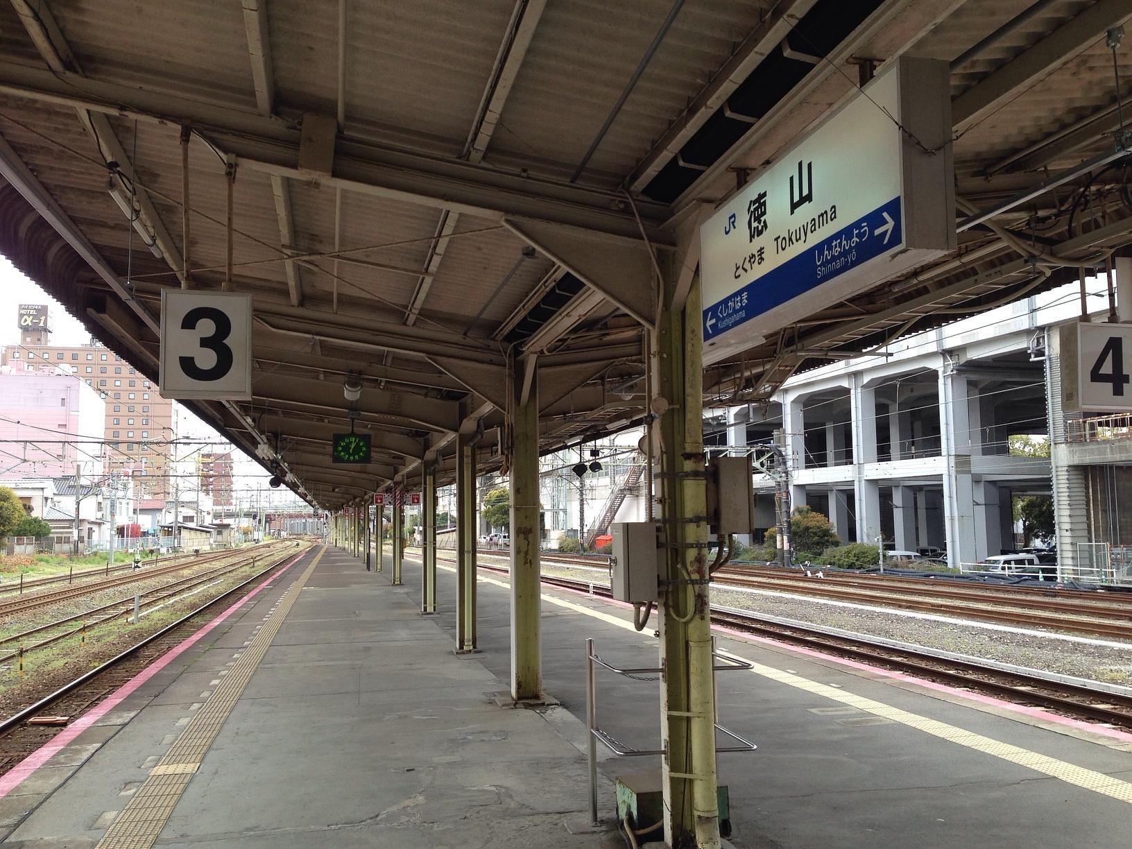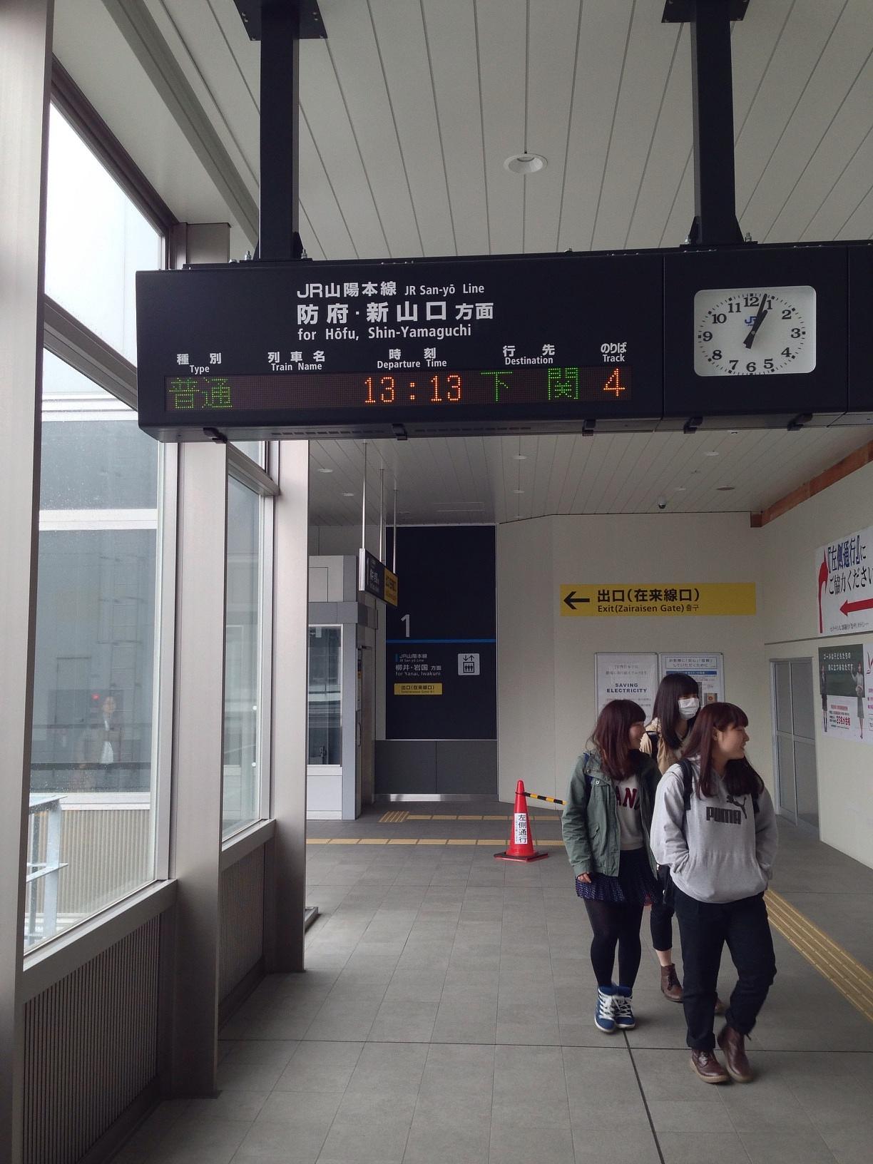 徳山駅 (Tokuyama Sta.) Train Station 다시 1시 13분 출발 보통열차를 타고 토쿠야마 역에서 시모노세키 역까지 이동합니다. April 4th, 2014, PM 1:48