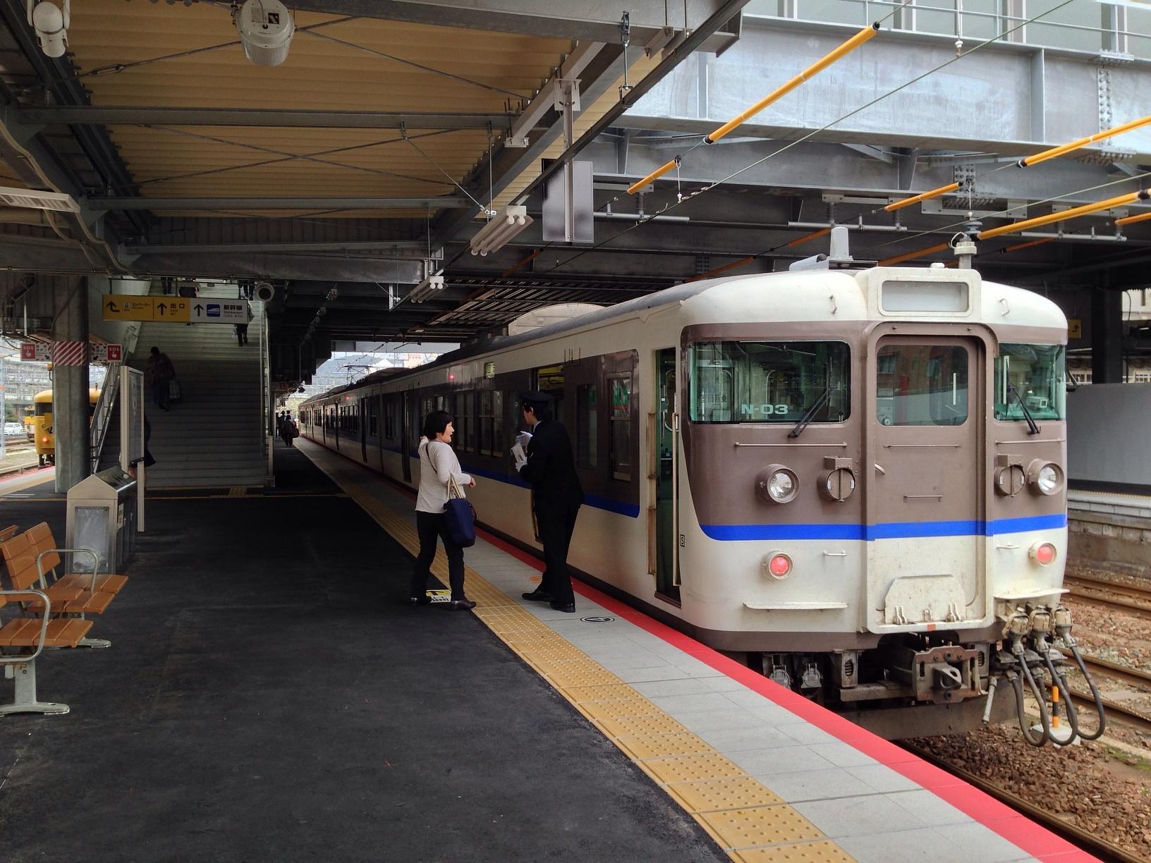 徳山駅 (Tokuyama Sta.) Train Station 다시 1시 13분 출발 보통열차를 타고 토쿠야마 역에서 시모노세키 역까지 이동합니다. April 4th, 2014, PM 1:07