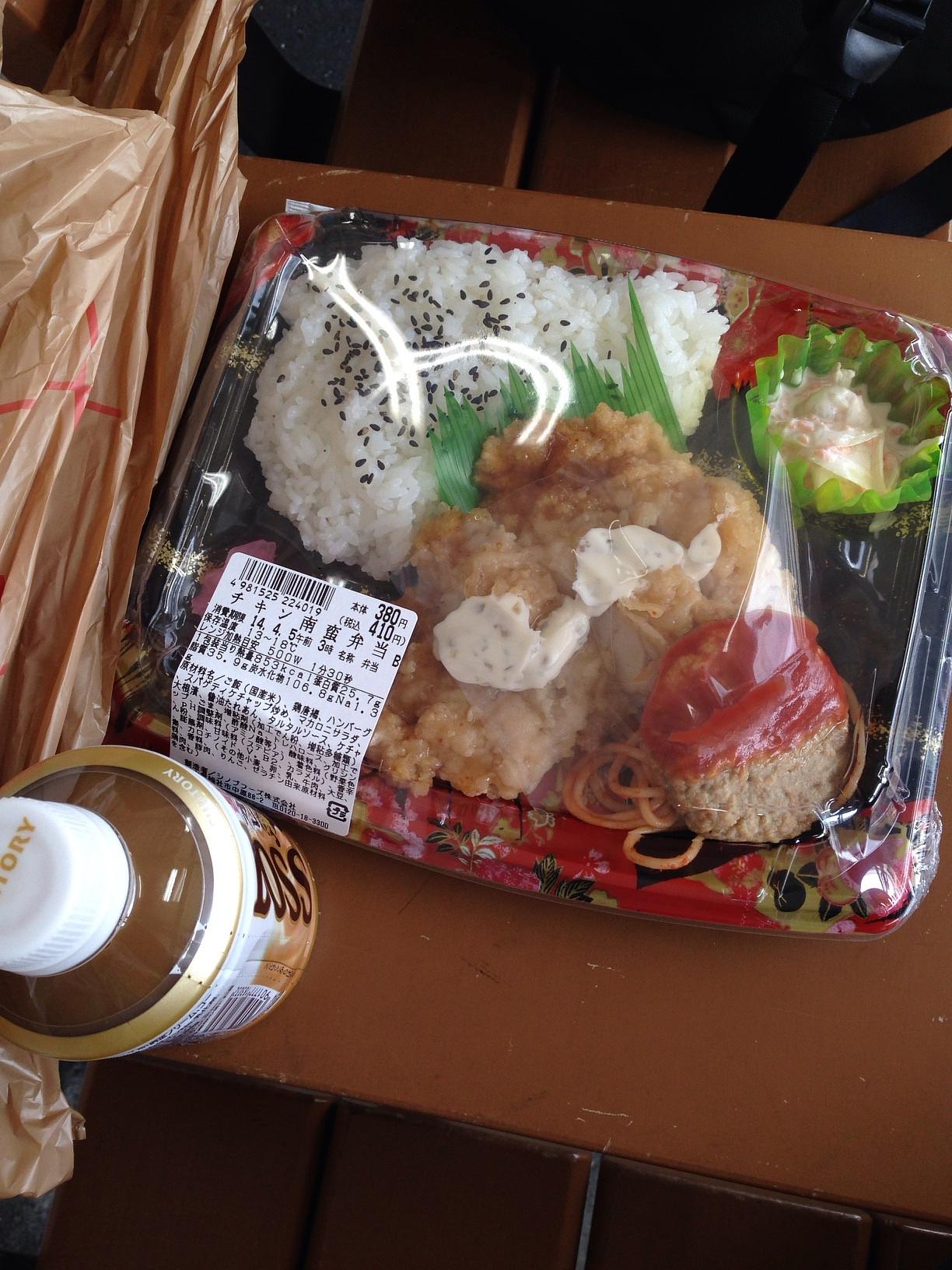 下関駅 (Shimonoseki Sta.) Train Station 근처 편의점에서 하나 사서 점심으로 먹겠습니다. 추워서 옷을 꺼내 입었는데도 으슬으슬하네요. April 4th, 2014, PM 3:18