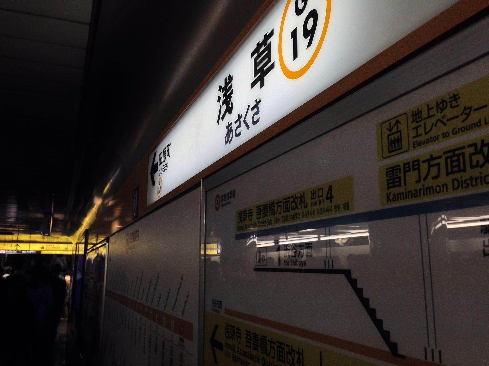 浅草駅 (Asakusa Sta.) Train Station 체크인 시간이 넘었으므로 빨리 숙소가 있는 오이마치 역으로. 도쿄메트로 아사쿠사 선 아사쿠사 역에서 JR로 환승할 수 있는 아사쿠사바시 역까지 이동합니다. March 29th, 2014, PM 6:32