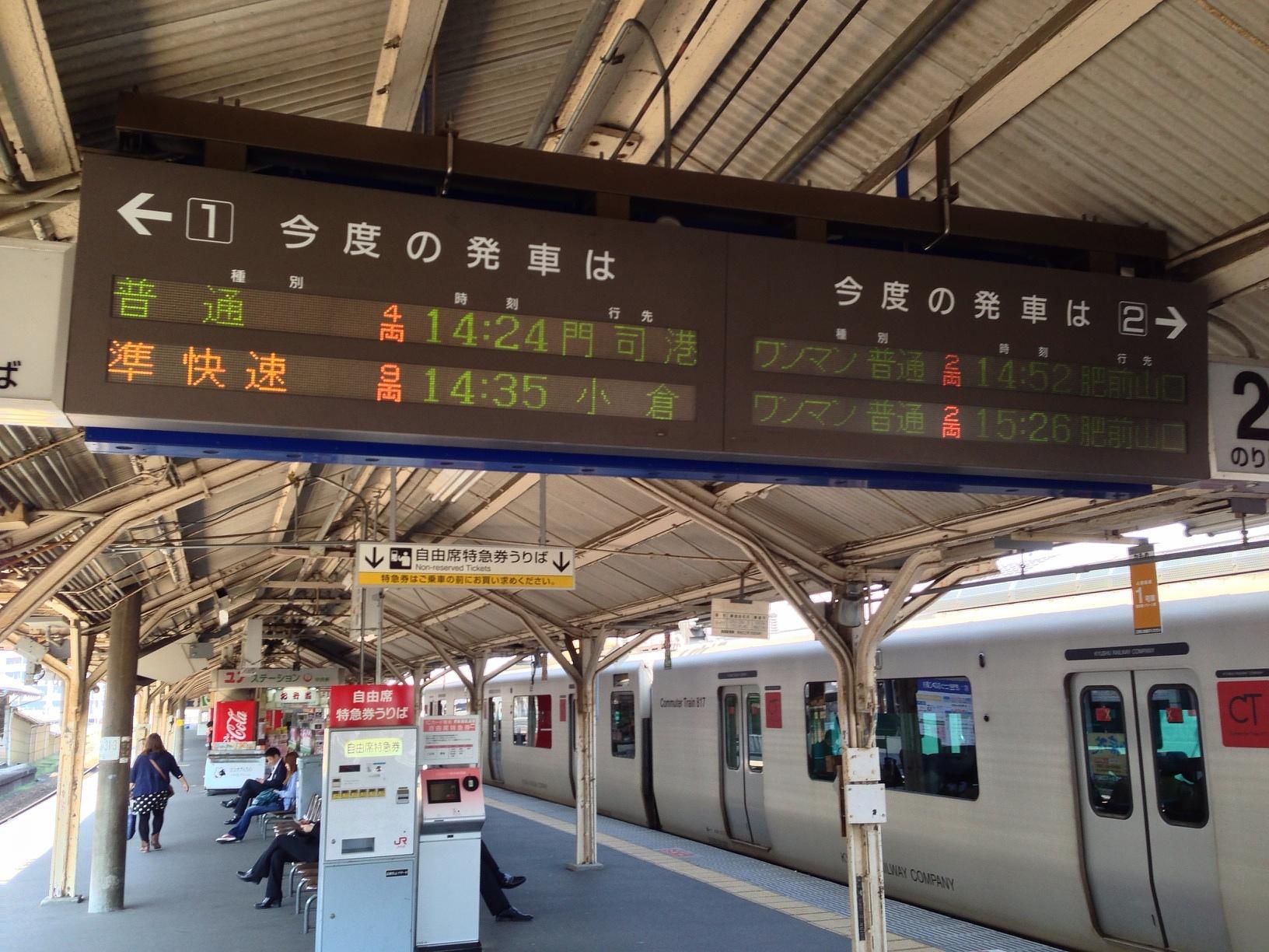 드디어 마지막! 2시 35분 출발 코쿠라 역 방면 JR카고시마선 준쾌속을 타고 토스 역에서 하카타 역까지 이동합니다.