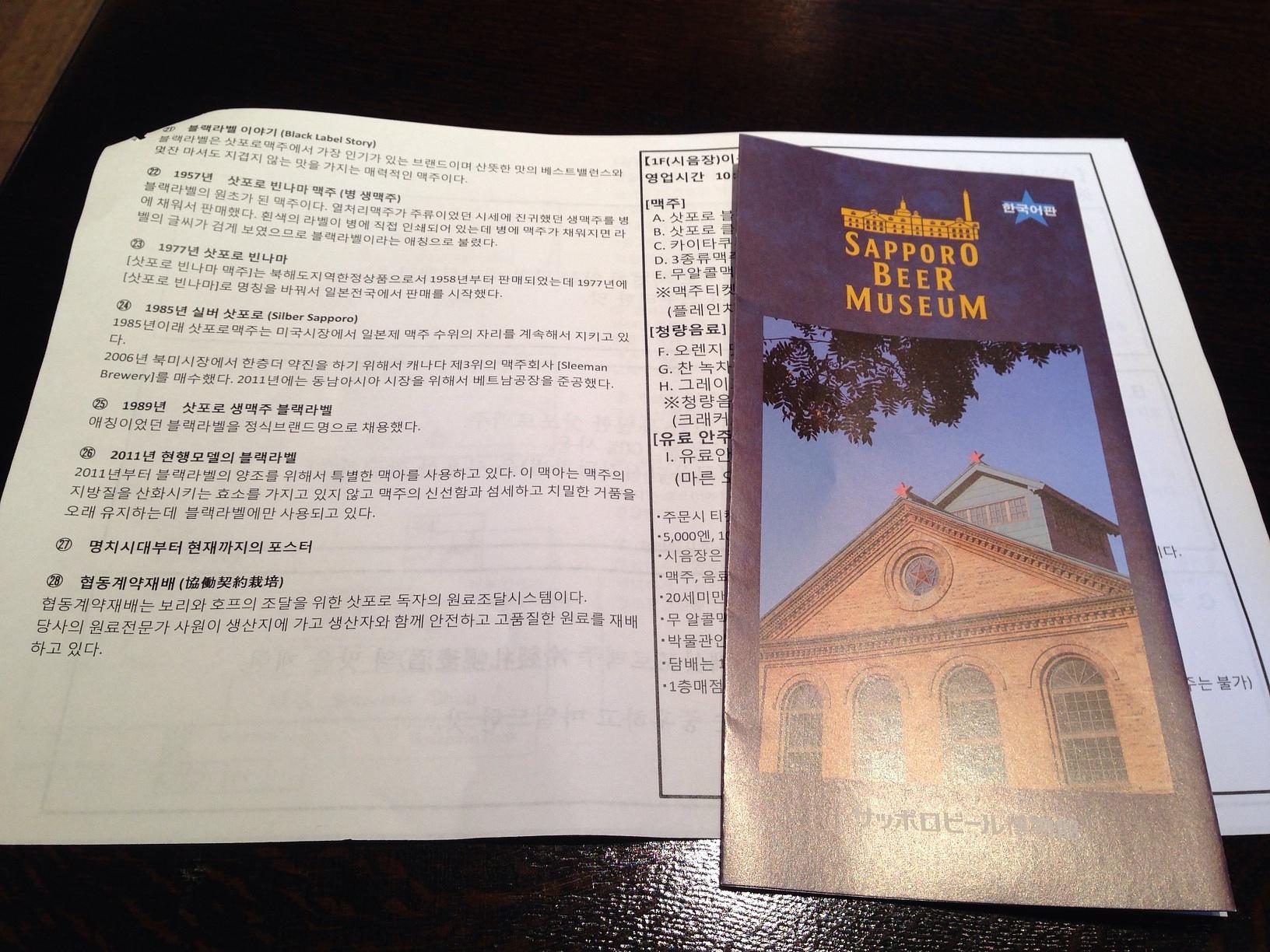 サッポロビール博物館 (Sapporo Beer Museum) Museum 한국 사람들이 많이 오는지 전시물 설명 전문 번역서에 한국어 팜플렛 뿐 아니라 직원들이 한국어에 능통하다. 아까 내려가면서 안내에 한국어 통역이 들리길래 다시 올라가 봤더니 가이드를 대동한 한국 아주머니 한 그룹이 설명을 듣고 있... 아 저기 앉으시네 March 26th, 2014, PM 4:34